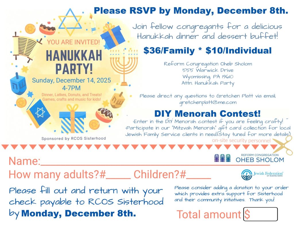 Sponsored by the RCOS Sisterhood with support from the Jewish Federation of Reading.
